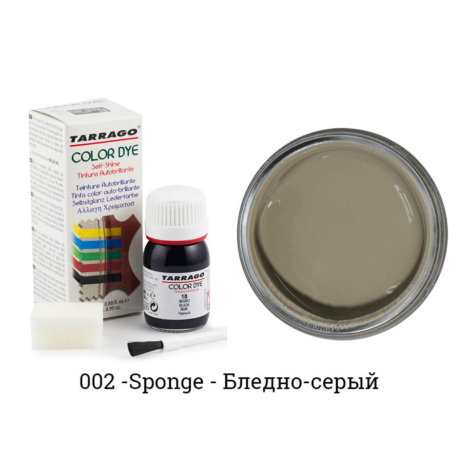 Tarrago Color Dye — один из самых популярных продуктов для покраски обуви, сумок и кожаных курток. Продукт представляет из себя жидкое красящее вещество на водно-восковой основе, с огромным выбором цветов. В комплект входит кисточка для нанесения. Принцип работы — укрывной. Это означает что на поверхности материала образуется тончайшая пленка. При этом кожа остается мягкой и не теряет своих свойств.