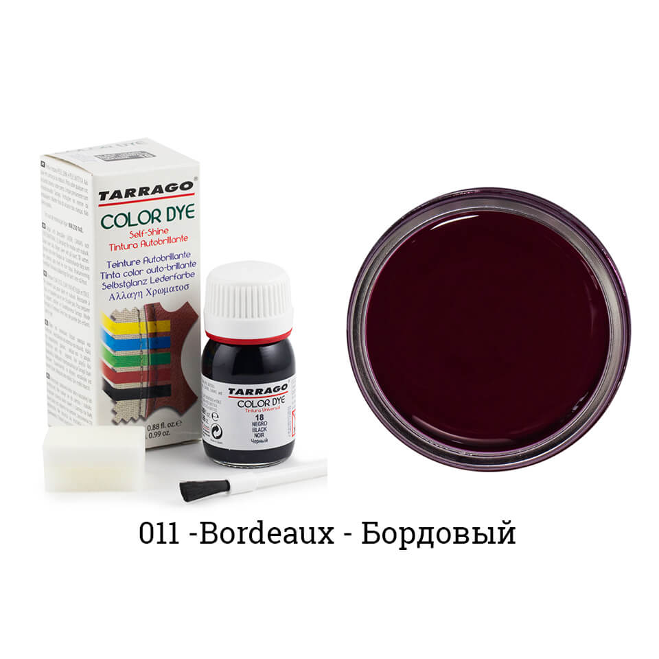 Tarrago Color Dye — краска на водно-восковой основе. Подходит для гладкой натуральной и искусственной кожи, а так же синтетических материалов. Сохраняет мягкость кожи, не трескается и не отходит.