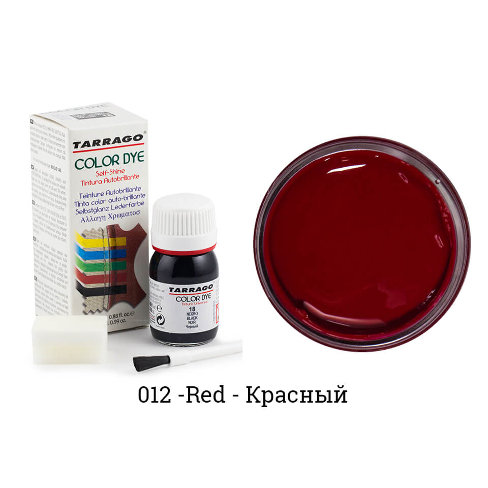Tarrago Color Dye — один из самых популярных продуктов для покраски обуви, сумок и кожаных курток. Продукт представляет из себя жидкое красящее вещество на водно-восковой основе, с огромным выбором цветов. В комплект входит кисточка для нанесения. Принцип работы — укрывной. Это означает что на поверхности материала образуется тончайшая пленка. При этом кожа остается мягкой и не теряет своих свойств.