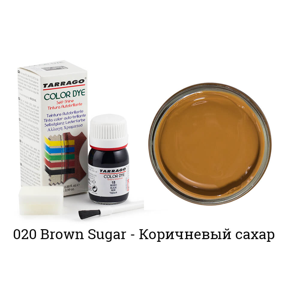 Tarrago Color Dye — один из самых популярных продуктов для покраски обуви, сумок и кожаных курток. Продукт представляет из себя жидкое красящее вещество на водно-восковой основе, с огромным выбором цветов. В комплект входит кисточка для нанесения. Принцип работы — укрывной. Это означает что на поверхности материала образуется тончайшая пленка. При этом кожа остается мягкой и не теряет своих свойств.