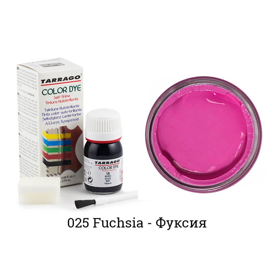Tarrago Color Dye — один из самых популярных продуктов для покраски обуви, сумок и кожаных курток. Продукт представляет из себя жидкое красящее вещество на водно-восковой основе, с огромным выбором цветов. В комплект входит кисточка для нанесения. Принцип работы — укрывной. Это означает что на поверхности материала образуется тончайшая пленка. При этом кожа остается мягкой и не теряет своих свойств.