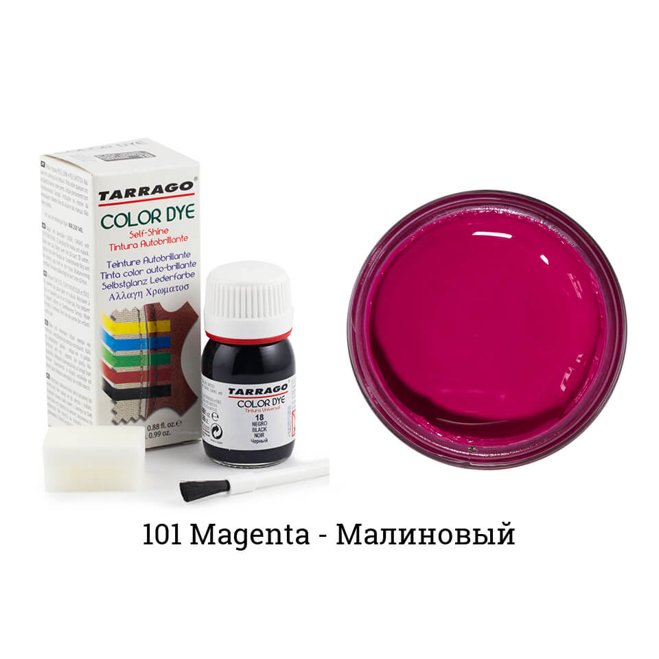 Tarrago Color Dye — один из самых популярных продуктов для покраски обуви, сумок и кожаных курток. Продукт представляет из себя жидкое красящее вещество на водно-восковой основе, с огромным выбором цветов. В комплект входит кисточка для нанесения. Принцип работы — укрывной. Это означает что на поверхности материала образуется тончайшая пленка. При этом кожа остается мягкой и не теряет своих свойств.