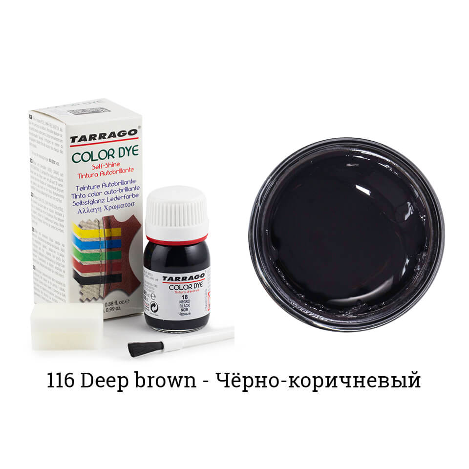 Tarrago Color Dye — один из самых популярных продуктов для покраски обуви, сумок и кожаных курток. Продукт представляет из себя жидкое красящее вещество на водно-восковой основе, с огромным выбором цветов. В комплект входит кисточка для нанесения. Принцип работы — укрывной. Это означает что на поверхности материала образуется тончайшая пленка. При этом кожа остается мягкой и не теряет своих свойств.