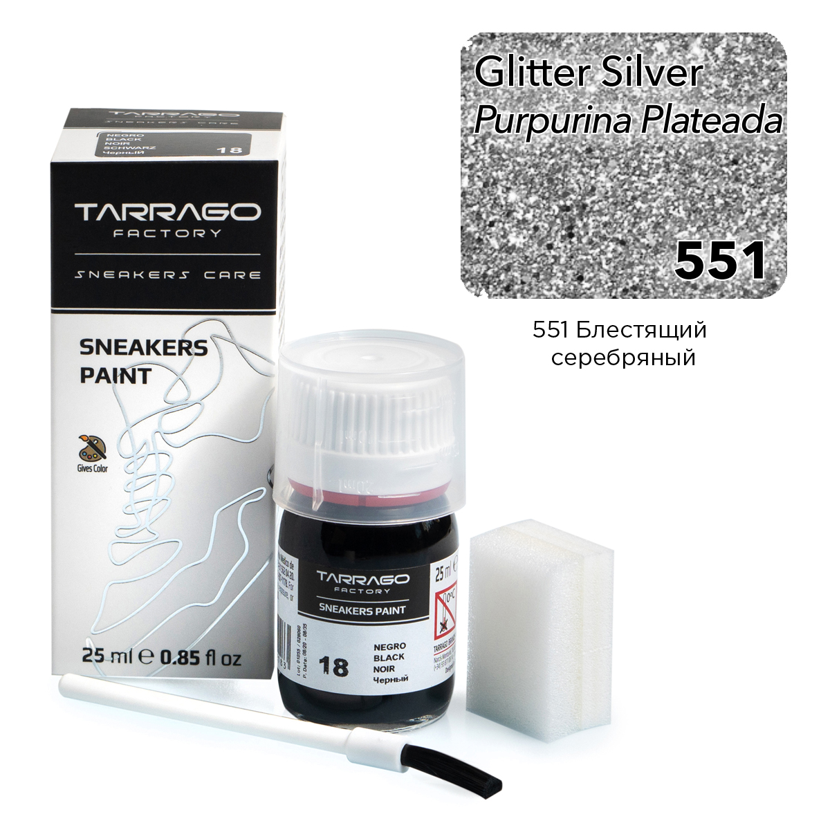 Краска для кроссовок Tarrago Sneaker Paint, блестящий серебряный